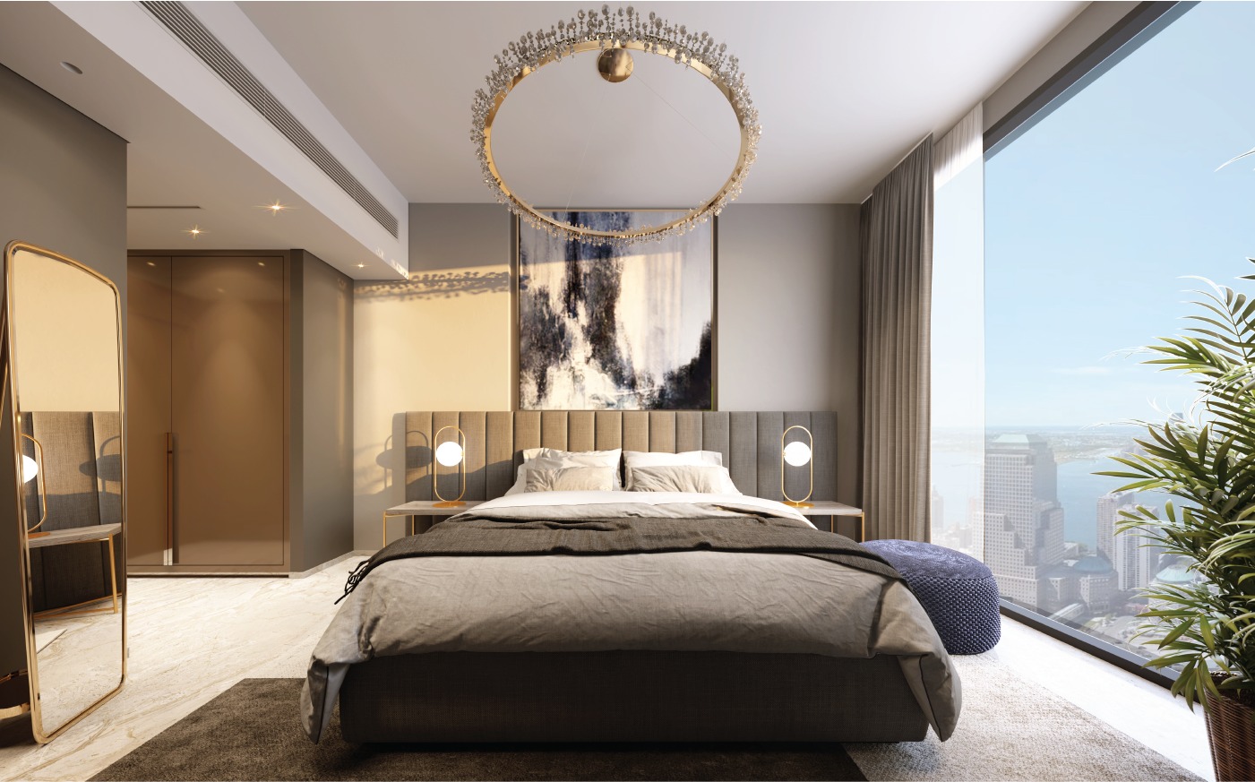 The project comprises 1-4 bedroom apartments that come fully furnished with high-quality bathroom fixtures, lighting fittings, and well-equipped kitchens. These apartments boast an interior design characterized by light tones, tasteful contrasting color accents, and a prevalent use of sleek curved lines, lending them an exceptional and stylish appearance. To further elevate the complex's appeal, a range of modern amenities have been incorporated to ensure the utmost comfort for future residents. The Renad Tower, a striking high-rise structure, features a podium that hosts a rooftop swimming pool complete with comfortable sun loungers and relaxation areas.